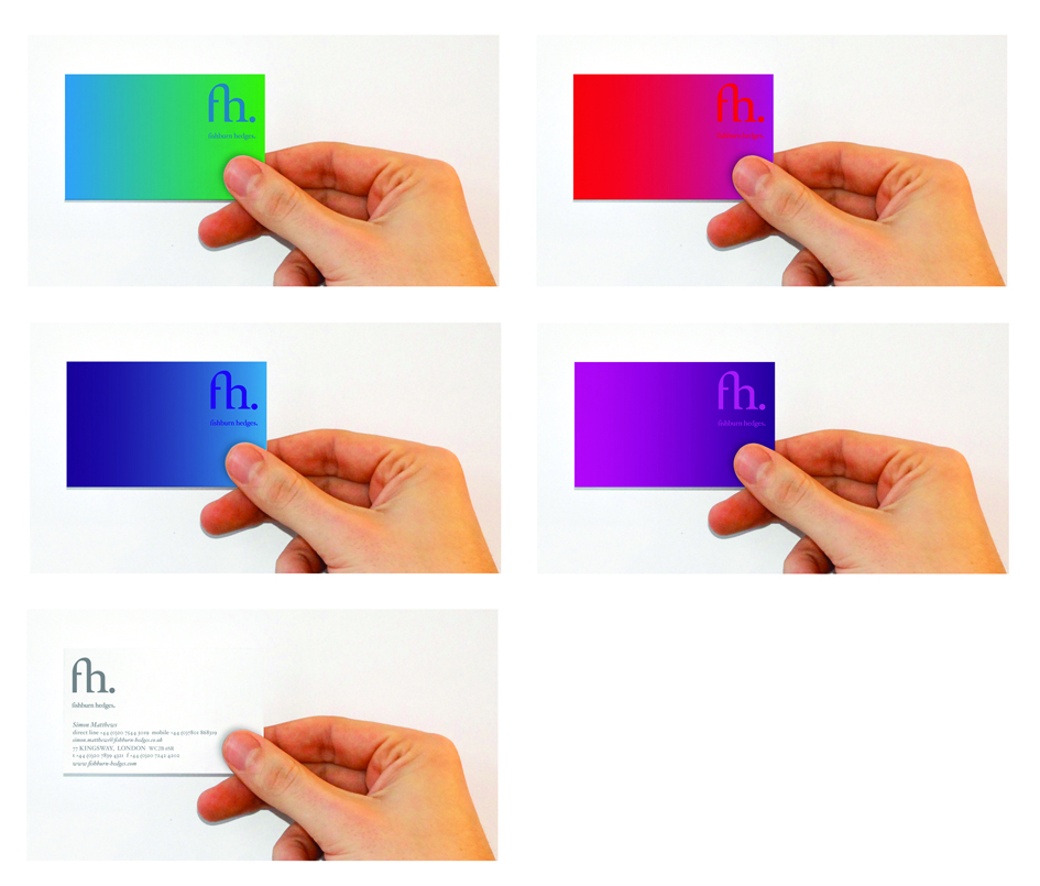 an elegant ligature and juicy gradients saying something about flow and merging, for a brand relaunch of pr company fishburn hedges. This was done as senior designer, while working at studio FHD which has since merged to become further.It was a tricky year for me – trying to work in a studio with small children at and ill parents to care for. and it led to me moving out of a permanent organisation and becoming freelance while working as a design tutor.
