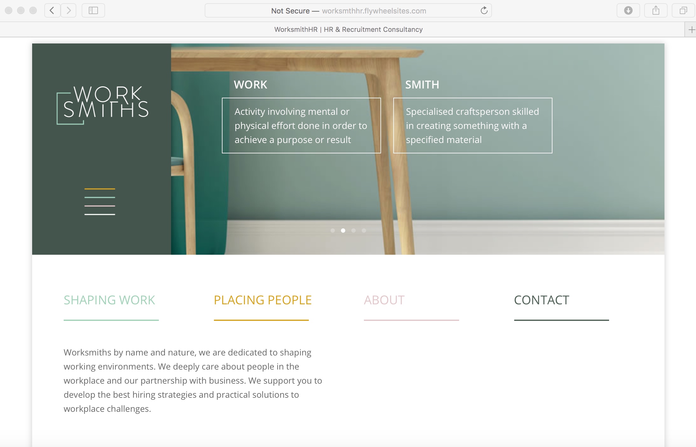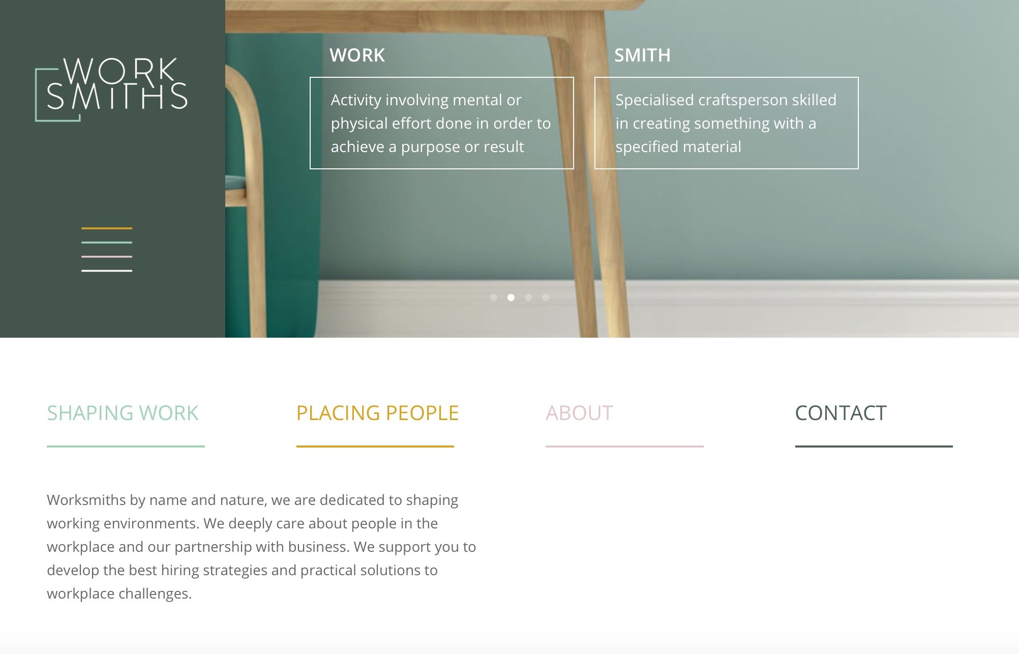 I’ve worked with HR and recruitment consultants Worksmiths over a few years now, and in a few waves of activity which started with consulting on and designing their name and brand identity. More recently the website. The best thing about this creative project is that it involved wordsmithing, typography, illustrating and the creatino of a calm elegant intelligent looking brand identity.