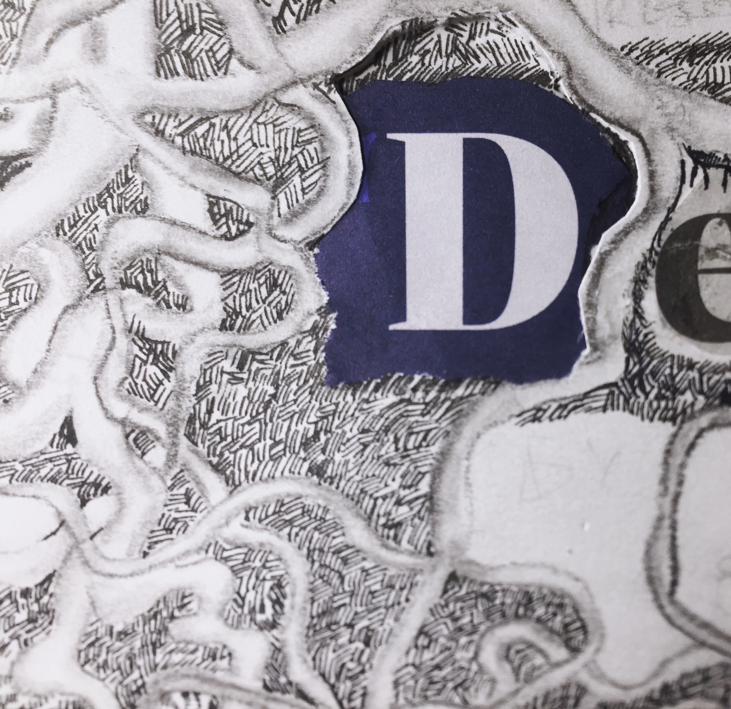 Here is some of the development work, to show you some of my process. I must admit I did prefer the typography that was a bit more broken up. But the collage lettering was an experiment that I abandoned.