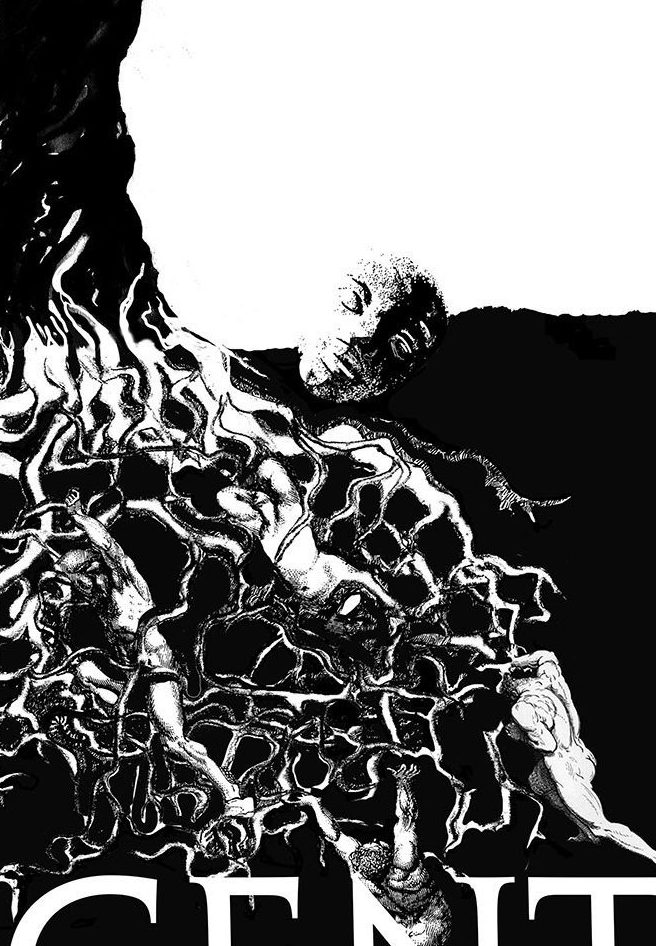 I love drawing trees and organic forms, and this project allowed me to take it to dark places. collaging in blake-style figures, as commissioned by – and read more about it at midland actors theatre.
